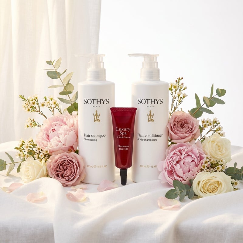 自然の恵をふんだんに取り入れた大人気のヘアケアシリーズからソティスシャンプーとコンディショナーのセット。こちらのセットをご購入の方には、髪に優美なハリ・コシ・艶を与えるラグジュアリースパコレクション「グラマラスヘアオイル」現品(2,640円相当)をプレゼントいたします。