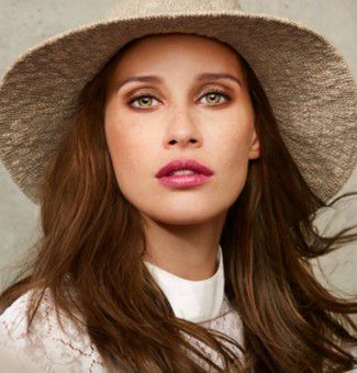 口元を彩る光沢のある鮮やかなフクシアカラーが明るく華やかさを演出してくれます。