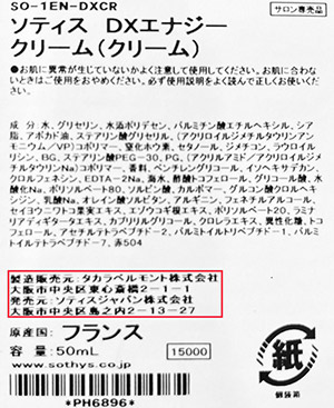 国内正規品には以下のように製造販売元「タカラベルモント株式会社」販売元「ソティスジャパン株式会社」と記載がございます。